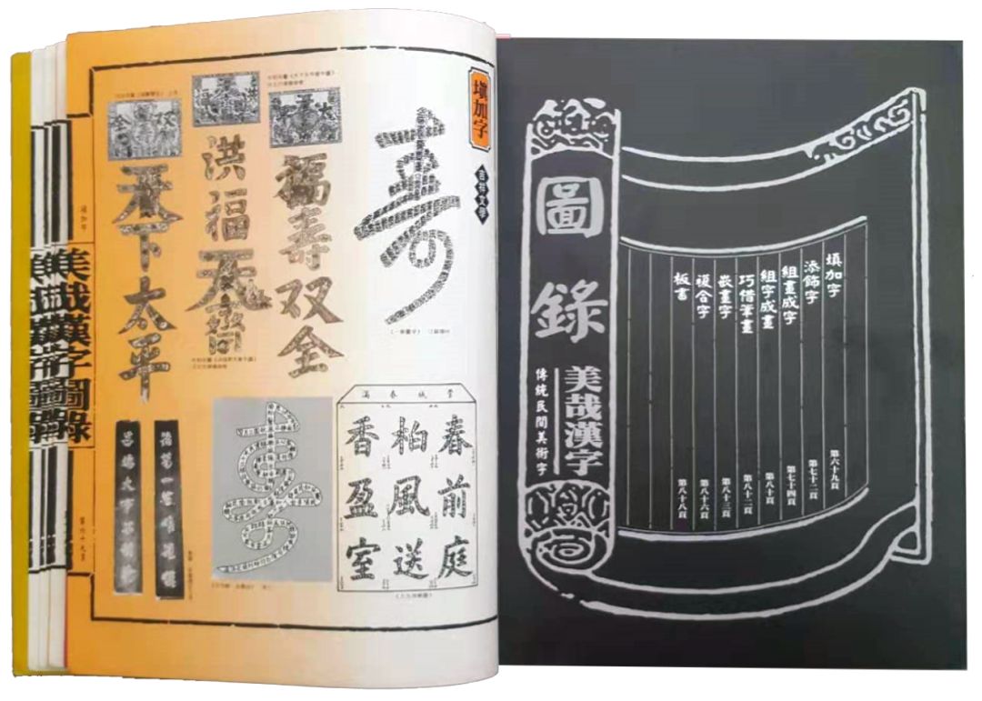 《美哉汉字》由汉声出版社出版,分为上下两卷,上卷“设计卷”,以张道一教授“民间的美术字”一文开场,文中除了概述美术字的历史源流,并将古今以来的美术字依其字图特色,分为了八个大类,并配上详细清晰的图文解说,让读者可以更清楚了解八类不同的字图关系,以及“字+图→美术字”的演变过程。